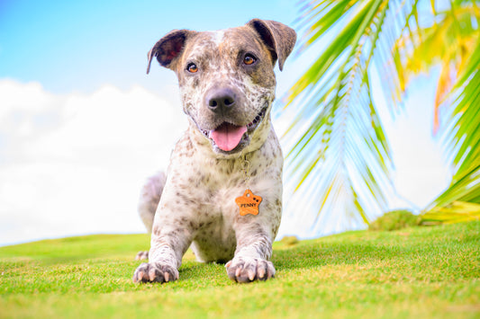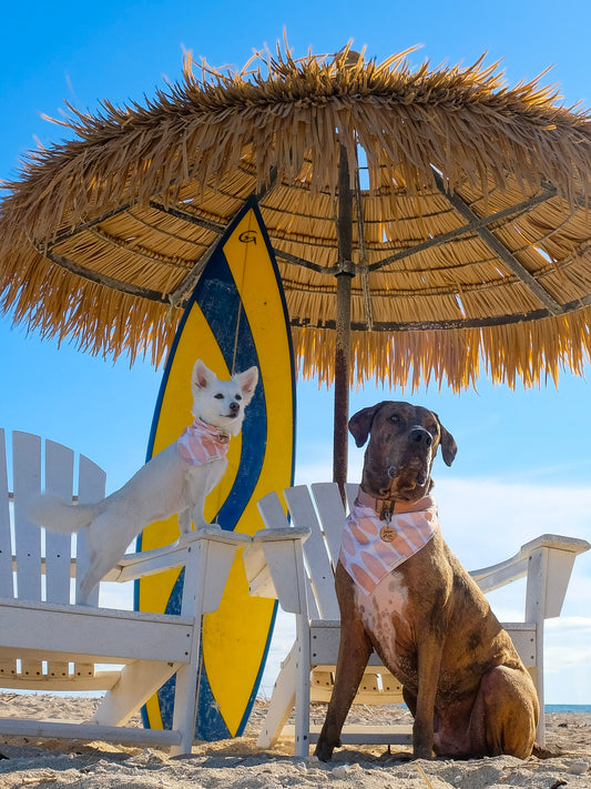 Surf's Up Classic Tie-On Dog Bandana + Personalized Koa Dog Tag