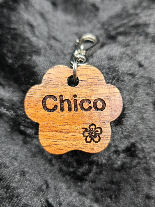 Custom Koa Wood Pet Tag: Personalized Engraved Flower-Shaped Pet Tag